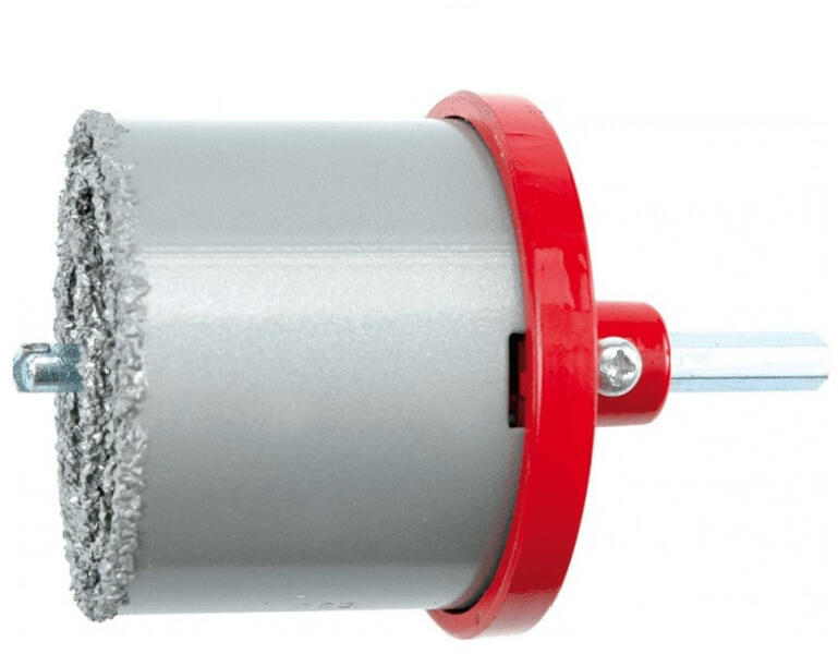 Koronafúró készlet - 73 mm-es átmérõ, kerámiához, gipszkartonhoz, járólapokhoz, csempékhez A koronafúrót elsõsorban alacsonyabb szilárdságú kerámialapokban történõ dobozhelyek fúrására tervezték. Az élettartam növelése érdekében tanácsos folyamatos vízhűtést alkalmazni. Az eszköz rendelkezik központosító fúrószárral, amely stabilizálja a célterületen. Befogás típusa: hatszögletes, Anyag: acél A központosítón a befogótányér egy metrikuscsavarral rögzül, amelyet elegendõ közepesen meghúzni, ne tépje meg, mert azáltal lehasadhat a teljes menetfészek!